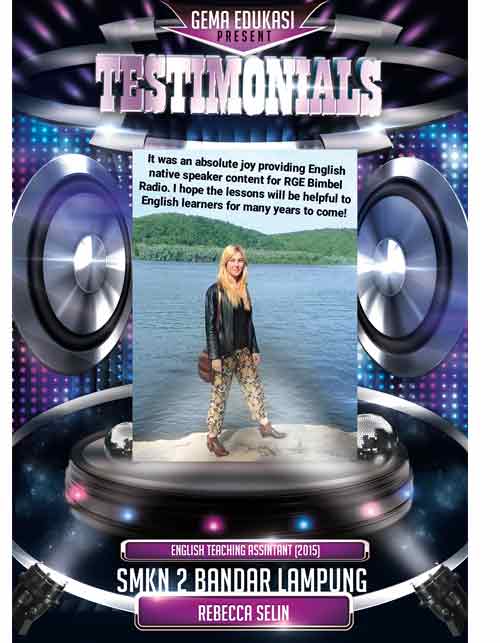 “I hope the lessons will be helpful... stay tune on RGE”Rebecca SelinSMKN 2 Bandar Lampung